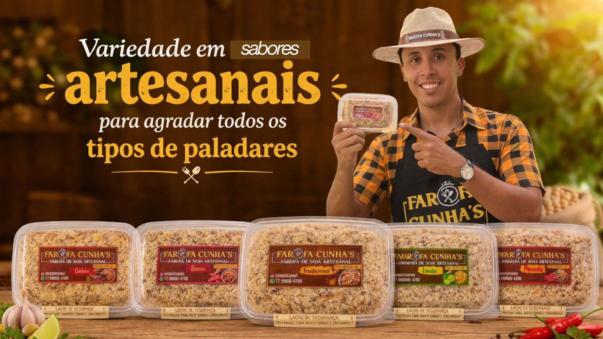 Cada farofa e preparada com ingredientes selecionados e o carinho de quem entende de tradicao.